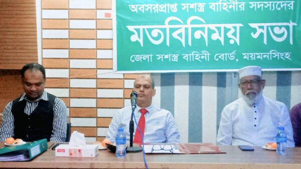 কিশোরগঞ্জে অবসরপ্রাপ্ত সশস্ত্র বাহিনীর সদস্যদের সাথে মতবিনিময় সভা অনুষ্ঠিত।