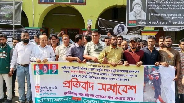পলাশবাড়ীতে যুবদল নেতা কাকনের ওপর সশস্ত্র হামলার প্রতিবাদে সমাবেশ