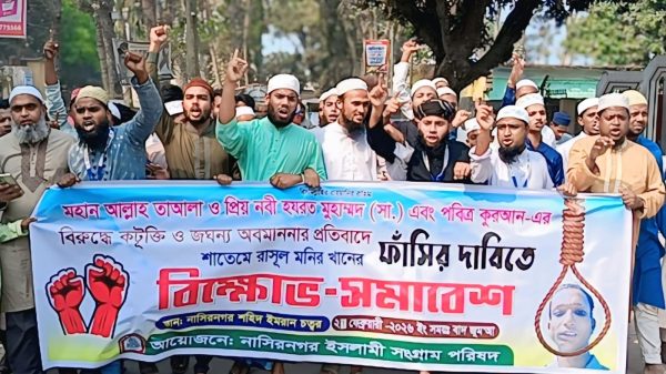 নাসিরনগরে মহানবী (সা.)–এর শানে কটূক্তির অভিযোগে বিক্ষোভ