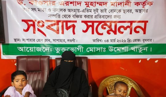 সাপাহারে সম্পত্তি থেকে সৎ মা ও নাবালক শিশুদের বঞ্চিত করার প্রতিবাদে সংবাদ সম্মেলন