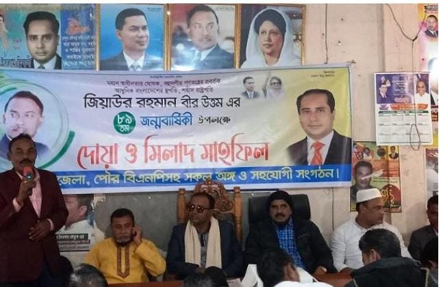 নেত্রকোনা প্রতিনিধি, মহান স্বাধীনতার ঘোষক, বহু দলীয় গণতন্ত্রের প্রবক্তা, আধুনিক বাংলাদেশের রূপকার, বাংলাদেশ জাতীয়তাবাদী দলের (বিএনপি) প্রতিষ্ঠাতা চেয়ারম্যান এবং সাবেক রাষ্ট্রপতি শহীদ জিয়াউর রহমানের ৮৯তম জন্মবার্ষিকী উপলক্ষ্যে আলোচনা সভা ও দোয়া মাহফিল অনুষ্ঠিত হয়েছে।