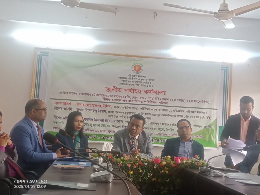 টাঙ্গাইলের মধুপুরে গ্রামীণ মাটির রাস্তাসমূহ টেকসই করণের রক্ষ্যে হেরিং বোন বন্ড (এইচবিবি) করণ (২য় পর্যায়) (২য় সংশোধিত) শীর্ষক চলমান প্রকল্পের নিবিড় পরিবীক্ষণ সমীক্ষা বিষয়ক কর্মশালা অনুষ্ঠিত হয়েছে।