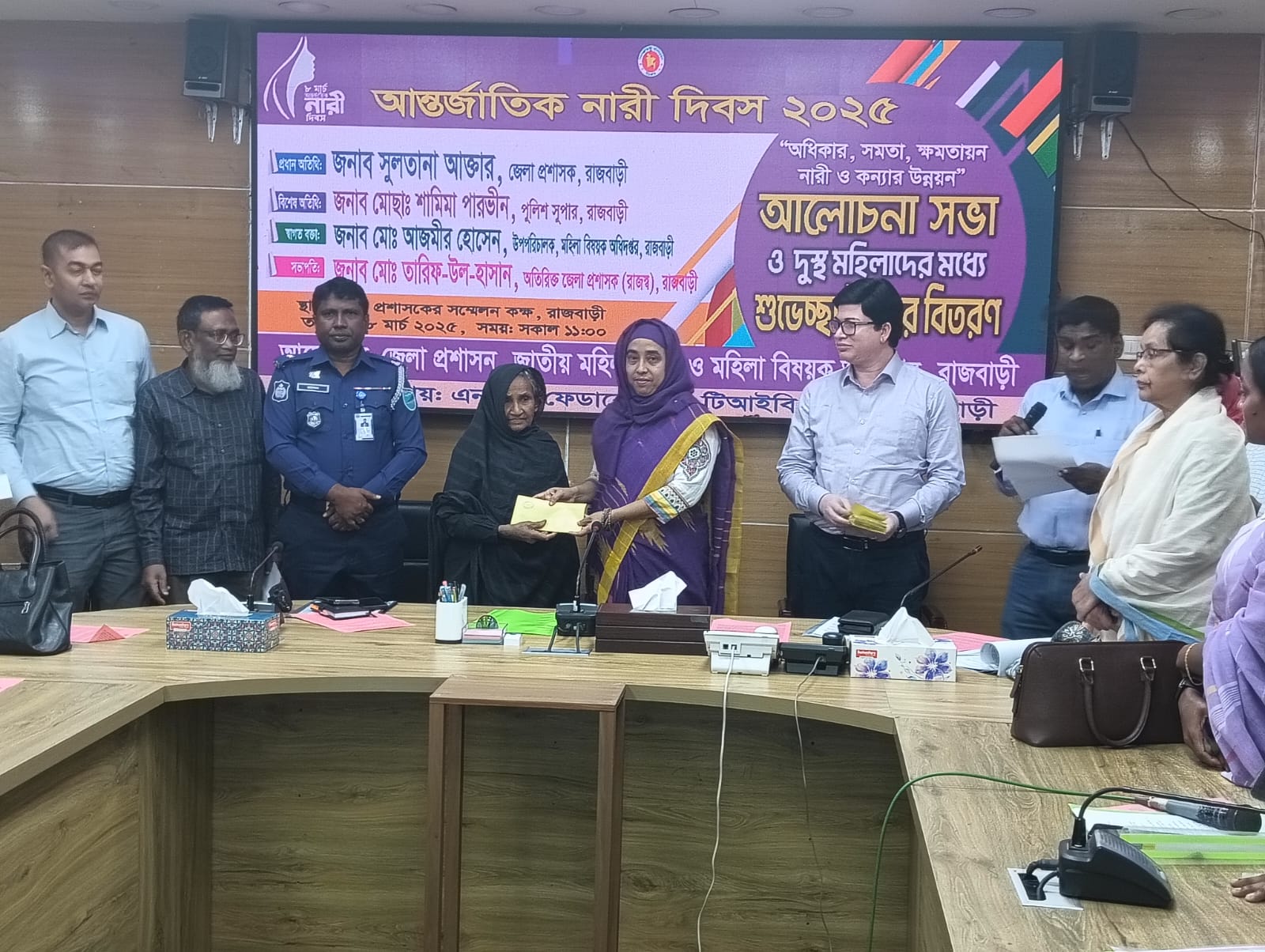 রাজবাড়ী জেলা পালিত হয় আন্তর্জাতিক নারী দিবস আজ ৮ মার্চ। বাংলাদেশসহ সারা বিশ্বে সমাজ ও পরিবারে নারীর কৃতিত্বকে স্মরণ ও সম্মান জানাতে প্রতিবছর এই দিনটি পালন করা হয়। জাতিসংঘ ১৯৭৫ সালে ৮ মার্চকে আন্তর্জাতিক নারী দিবস হিসেবে স্বীকৃতি প্রদান করে। বাংলাদেশেও সরকারি, বেসরকারি, বিভিন্ন রাজনৈতিক দল, শ্রমিক সংগঠন ও সংস্থা দিবসটি পালনে যথাযথ কর্মসূচি নিয়েছে। অধিকার, সমতা ক্ষমতায়ন নারী ও কল্যাণ উন্নয়ন আলোচনা সভা ও দুঃস্থ মহিলাদের মধ্যে শুভেচ্ছা উপহার বিতরণ করলেন। প্রধান অতিথি হিসেবে ছিলেন, জনাব সুলতানা আক্তার জেলা প্রশাসক রাজবাড়ী বিশেষ অতিথি জনাব মোছাঃ শামিমা পারভীন পুলিশ সুপার রাজবাড়ী অনুপস্থিত থাকায় অতিরিক্ত পুলিশ সুপার রাসেল আহমেদ রাজবাড়ীর উপস্থিত ছিলেন। সভাপতি করেন জনাব মোঃ তারিকুল হাসান অতিরিক্ত জেলা প্রশাসক (রাজস্ব) রাজবাড়ী।জেলা প্রশাসক সম্মেলন কক্ষ দিবাসটি পরিচালনা স্বাগত বক্তব্য রাখেন জনাব মোঃ আজমীর হোসেন উপপরিচালক মহিলা বিষয়ক অধিদপ্তর রাজবাড়ী।সহযোগিতায় এনজিও ফেডারেশন ও টিআইবি সনাক, রাজবাড়ী আয়োজনে জেলা প্রশাসন, জাতীয় মহিলা সংস্থা ও মহিলা বিষয়ক অধিদপ্তর রাজবাড়ী দোস্ত মহিলাদের মধ্যে শুভেচ্ছা উপার বিতরণ করে নারী দিবস শেষ করেন।