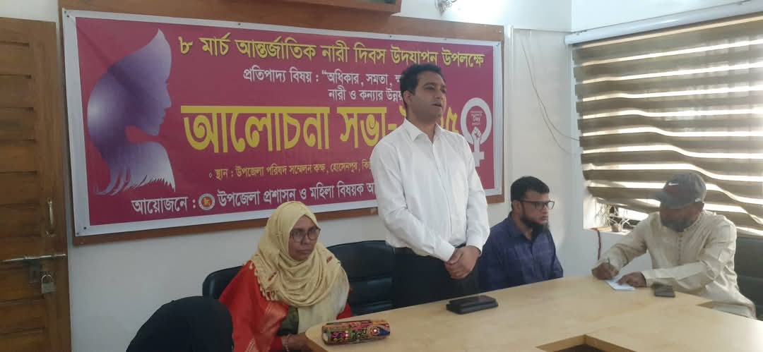 হোসেনপুরে আন্তর্জাতিক নারী দিবস- ২০২৫ পালন করা হয়েছে। এ উপলক্ষে গতকাল শনিবার সকালে উপজেলা পরিষদ সন্মেলন কক্ষে আলোচনা সভার আয়োজন করে উপজেলা প্রশাসন ও মহিলা বিষয়ক অধিদপ্তর। হোসেনপুর উপজেলা মহিলা বিষয়ক কর্মকর্তা মোহাম্মদ জিয়াউর রহমানের সভাপতিত্বে আলোচনা সভায় তিনি স্বাগত বক্তব্য রাখেন। প্রধান অতিথি হিসেবে এ সময় বক্তব্য রাখেন, ভারপ্রাপ্ত উপজেলা নির্বাহী কর্মকর্তা ও সহকারী কমিশনার (ভূমি)