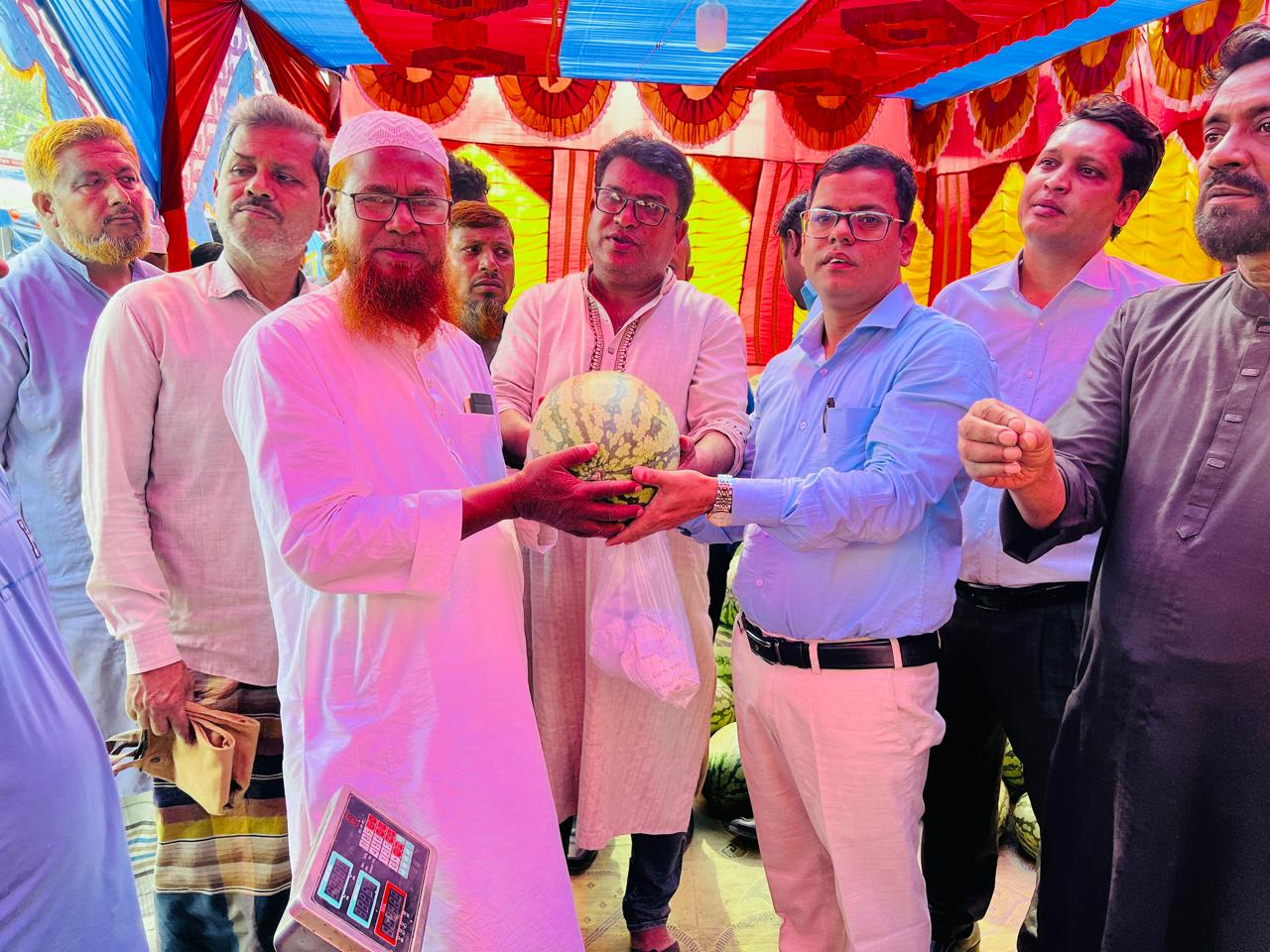 বাবুল আকতার,সাপাহার (নওগাঁ) প্রতিনিধিঃ তরমুজ একটি অত্যন্ত রসালো পানি সরবরাহকারী ও পুষ্টিকর ফল । চলছে মাহে রমজান আবার শীতের আমেজ শেষে গরম পড়তে শুরু করেছে। এমন সময় ইফতারের অত্যন্ত অনুষঙ্গ রসালো মজাদার ফল তরমুজের শরবত দিয়ে অনেকেই রোজা ভাঙ্গেন। ইফতারের খাদ্য তালিকায় তরমুজের মতো রসালো ফল রাখতে চান। সম্প্রতিক সময়ে গরম এবং রমজানের কারণে বাংলাদেশের মৌসুমী ফল তরমুজের চাহিদা বেড়েছে ব্যাপক, একই সঙ্গে পাল্লা দিয়ে বেড়েছে দামও। যা সাধারণ নিম্ন আয়ের মানুষের ক্রয়ক্ষমতার বাইরে । এ নিয়ে অনেক ক্রেতা অসন্তোষ প্রকাশ করছেন। এরই পরিপ্রেক্ষিতে নওগাঁ জেলার সম্মানিত জেলা প্রশাসক মহোদয় সার্বিক তত্ত্বাবধানে ও নির্দেশনায় সাপাহার উপজেলার সম্মানিত উপজেলা নির্বাহী অফিসার জনাব সেলিম আহমেদ ন্যায্য মূল্যে তরমুজ বিক্রয় শুরুর উদ্বোধন করেন। এ সময় তিনি বলেন ভোক্তরা তরমুজ খেতে চায় কিন্তু দাম বেশি হওয়ায় অনেক নিম্ন আয়ের মানুষ কিনতে পারছেন না। এই মাহে রমজানে যেন সকল শ্রেণি ও পেশার মানুষেরা ন্যায্য মূল্যে কিনতে পারে এবং এর মাধ্যমে মানুষকে দেখাতে চান তরমুজের দাম বেশি না কিন্তু বেশি দামে বিক্রি হচ্ছে। আবার শুধু কম দাম নয়, কোয়ালিটি নিশ্চিত করতেও তিনি বদ্ধ পরিকর। তাছাড়া এটি সিন্ডিকেট ভাঙ্গার একটি বড় উদ্যোগ বলে তিনি মনে করেন।এ সময় তিনি সাংবাদিকদের কে বলেন সিন্ডিকেটের তথ্য গণমাধ্যমে আরও বেশি করে তুলে ধরতে হবে। সেক্ষেত্রে উপজেলায় কোথাও সিন্ডিকেটের তথ্য পেলে সেটি ভাঙতে আমরা দেরি করব না। তিনি উপজেলায় জিরো পয়েন্টে একটি সুলভ মূল্যের তরমুজ বিক্রয় কেন্দ্রে ৩৫ টাকা দরে প্রতি কেজি তরমুজ বিক্রয়ের শুভ উদ্বোধন করেন। এরপর পর তরমুজ কেনার জন্য ক্রেতাদের উপচেপড়া ভিড় লক্ষ করা যায়।এ সময় ক্রেতাদের প্রশ্ন করা হলে তারা বলেন যেখানে বাজারে তরমুজ বিক্রি হচ্ছে ৫০ টাকা দরে কেজিতে সেখানে মাত্র ৩৫ টাকা দরে কেজি তরমুজ কিনতে পেয়েছি এবং পণ্যের গুণগত মান অনেক ভালো। তারা আরো বলেন এই মহৎ ও ব্যতিক্রমী উদ্যোগের জন্য উপজেলা নির্বাহী অফিসারের মঙ্গল কামনা করেন। তারা আরো বলে এর ফলে অনেক গরীব মানুষ তরমুজ কিনতে পারবে। এ সময় আরো উপস্থিত ছিলেন উপজেলা সমাজসেবা অফিসার জনাব মোঃ দেলোয়ার হোসেন, উপজেলা আইসিটি অফিসার জনাব মোস্তাকিম হোসেন, উপজেলা পল্লী উন্নয়ন অফিসার জনাব মোঃ আলমগীর হোসেনসহ বিভিন্ন গণ্যমান্য ব্যক্তি, ভোক্তা, প্রিন্ট ও ইলেকট্রনিক মিডিয়ার সাংবাদিকবৃন্দ।