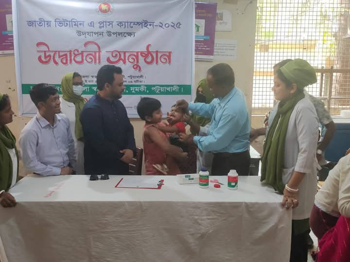 দুমকি প্রতিনিধিঃ পটুয়াখালীর দুমকিতে উপজেলা স্বাস্থ্য বিভাগের আয়োজনে জাতীয় ভিটামিন এ প্লাস ক্যাম্পেইন ২০২৫ এর উদ্বোধন করা হয়েছে।
