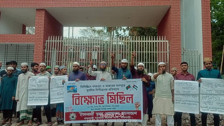 ফিলিস্তিনি গণহত্যা ও ভারতের নাগপুরে মুসলিম নিপীড়নের প্রতিবাদে রাজবাড়ীতে বিক্ষোভ ও মিছিল। আজ ২০মার্চ রোজ: বৃহস্পতিবার ,ইসলামী ছাত্র আন্দোলন বাংলাদেশ, রাজবাড়ী সরকারি কলেজ শাখার ,উদ্যোগে ফিলিস্তিনে গণহত্যা ও ভারতের নাগপুরে মুসলিম নিপীড়নের প্রতিবাদে বিক্ষোভ মিছিল অনুষ্ঠিত হয়।