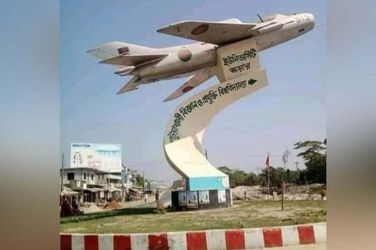 জেলা প্রতিনিধি পটুয়াখালীঃ বরিশাল-কুয়াকাটা মহাসড়কের ‘ইউনিভার্সিটি’ চত্বরে স্থাপিত পটুয়াখালী বিজ্ঞান ও প্রযুক্তি বিশ্ববিদ্যালয়ের (পবিপ্রবি) দিকনির্দেশক স্মারক যুদ্ধবিমানটি পুনরায় স্থাপিত হবে। বিশ্ববিদ্যালয়ের রেজিস্ট্রার বরাবর বিমান বাহিনী সদর দপ্তর কতৃক প্রেরিত পত্রের বরাতে বিষয়টি নিশ্চিত করেন বিশ্ববিদ্যালয়ের রেজিস্ট্রার অধ্যাপক ড. মো: ইকতিয়ার উদ্দিন।