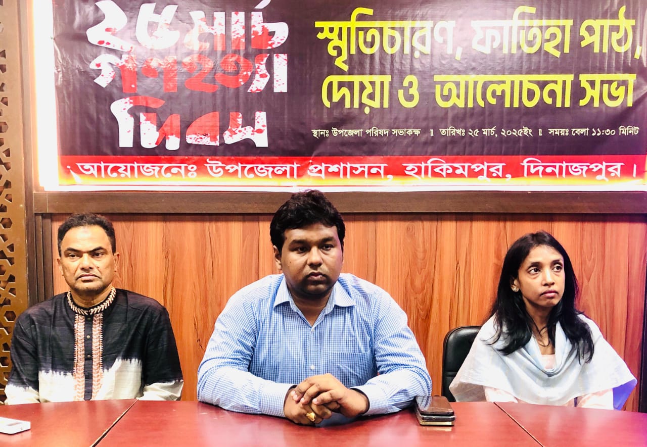 দিনাজপুরের হাকিমপুর হিলি উপজেলায় যথাযথ মর্যাদায় ২৫ শে মার্চ গণহত্যা দিবস-২০২৫ উপলক্ষ্যে আলোচনা সভা অনুষ্ঠিত হয়েছে।