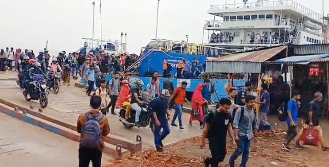রাজবাড়ি জেলার দৌলতদিয়া ফেরি ঘাটে ঈদ উপলক্ষে পরিবারের সঙ্গে উৎসব উদযাপন করতে রাজধানী ঢাকা থেকে বাড়ি ফেরার ঢল নেমেছে। দেশের দক্ষিণ-পশ্চিমাঞ্চলে প্রবেশের প্রধান পথ দৌলতদিয়া ঘাটে যাত্রী ও যানবাহনের চাপ শুক্রবার (২৮ মার্চ) ভোর থেকে লক্ষ করা যাচ্ছে। রাজবাড়ী জেলার গোয়ালন্দ উপজেলার দৌলতদিয়া লঞ্চ ও ফেরি ঘাটে যাত্রীদের ভিড় বাড়লেও চলাচলে কোনো ধরনের ভোগান্তি নেই। পাটুরিয়া থেকে লঞ্চ ও ফেরিতে পদ্মা নদী পাড়ি দিয়ে ঘাটে পৌঁছানো যাত্রীরা পরিবহন, মাহেন্দ্র, মোটরসাইকেলসহ বিভিন্ন বাহনে করে তাদের গন্তব্যের দিকে যাচ্ছেন। যদিও স্বাভাবিক সময়ের তুলনায় বাড়তি ভাড়া নেওয়ার অভিযোগ শোনা যাচ্ছে। এছাড়া ঘাটে যানজট না থাকায় দক্ষিণ-পশ্চিমাঞ্চল থেকে আসা যানবাহনগুলো সরাসরি ফেরিতে উঠে পড়ছে, ফলে যানজটের কোনো সমস্যা দেখা দেয়নি।বিআইডব্লিউটিসি ও বিআইডব্লিউটিএ সূত্রে জানা গেছে, যাত্রী ও যানবাহন পারাপারের জন্য এই নৌরুটে ১৭টি ফেরি এবং ২২টি লঞ্চ চালু রয়েছে, যা যাত্রীদের নির্বিঘ্ন যাত্রা নিশ্চিত করছে।