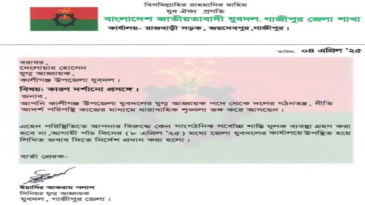 গাজীপুরের কালীগঞ্জে জাঙ্গালিয়া ইউনিয়ন বিএনপি ও সহযোগী সংগঠনের অস্থায়ী কার্যালয়ে ইউনিয়ন বিএনপির সভাপতি ও সাধারণ সম্পাদক সহ শতাধিক নেতাকর্মীকে দলীয় কার্যালয় থেকে বের করে দেওয়া, কার্যালয়ে নেতা কর্মীকে অবরুদ্ধ করে রাখা ও পুলিশ এসে পরিস্থিতি নিয়ন্ত্রনে আনে এমন মিথ্যা সংবাদ প্রকাশের তীব্র নিন্দা ও প্রতিবাদ জানিয়েছেন জাঙ্গালিয়া ইউনিয়ন বিএনপি।