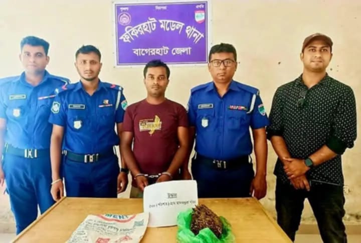 বাগেরহাট জেলা পুলিশ সুপার মহোদয়ের মোঃ তৌহিদুল আরিফ নির্দেশনায় ফকিরহাট মডেল থানা ভারপ্রাপ্ত কর্মকর্তা আব্দুর রাজ্জাক মীর এর নেতৃত্বে এসআই(নিঃ)/মেহেদী হাসান মিশন এবং এসআই (নিঃ)/মানিক রাজবংশী সহ পুলিশের একটি দল গোপন সংবাদের ভিত্তিতে মাদক বিরোধী অভিযান পরিচালনা কালে ফকিরহাট থানাধীন ০৩ নং পিলজংগ ইউনিয়নের অন্তর্গত বালিয়াডাংগা হইতে পাগলা দিয়াপাড়া রোডের বালিয়াডাংগা গ্রামস্থ আব্দুল রশিদের বাড়ির সামনে পাকা রাস্তার উপর হইতে আসামী ১।শেখ ইসলাম (২৫), পিতা-শেখ মান্নান,সাং-বালিয়াডাংগা,থানা-ফকিরহাট, জেলা-বাগেরহাট এর হেফাজত হইতে ৫০০(পাচশত)গ্রাম গাজা উদ্ধার পূর্বক জব্দ করা হয়েছে