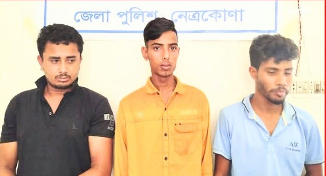 নেত্রকোনার মোহনগঞ্জে কিশোরীকে তুলে নিয়ে সংঘবদ্ধ ধর্ষণ এবং মোবাইলফোনে ভিডিও ধারণের অভিযোগে তিনজনকে গ্রেপ্তার করেছে পুলিশ। বুধবার (২৩ এপ্রিল) সুনামগঞ্জের ধর্মপাশা উপজেলার নিজগাবী গ্রাম থেকে তাদের গ্রেপ্তার করা হয়।