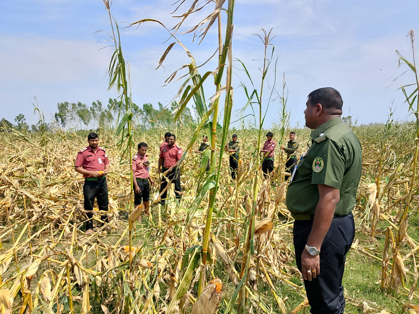 শুক্রবার সকালে হাতীবান্ধা উপজেলার কর্মকর্তা ধন চরণ নাথ এর নেতৃত্বে স্বেচ্ছায় ভুট্টা তুলে দেয়।