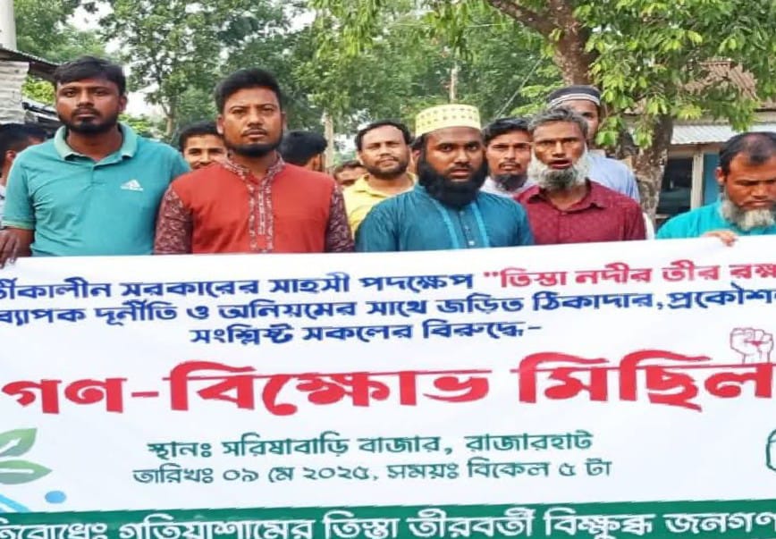 আজ শুক্রবার বিকেলে স্থানীয় তিস্তা তীরবর্তী এলাকায় এ বিক্ষোভ মিছিল অনুষ্ঠিত হয়।