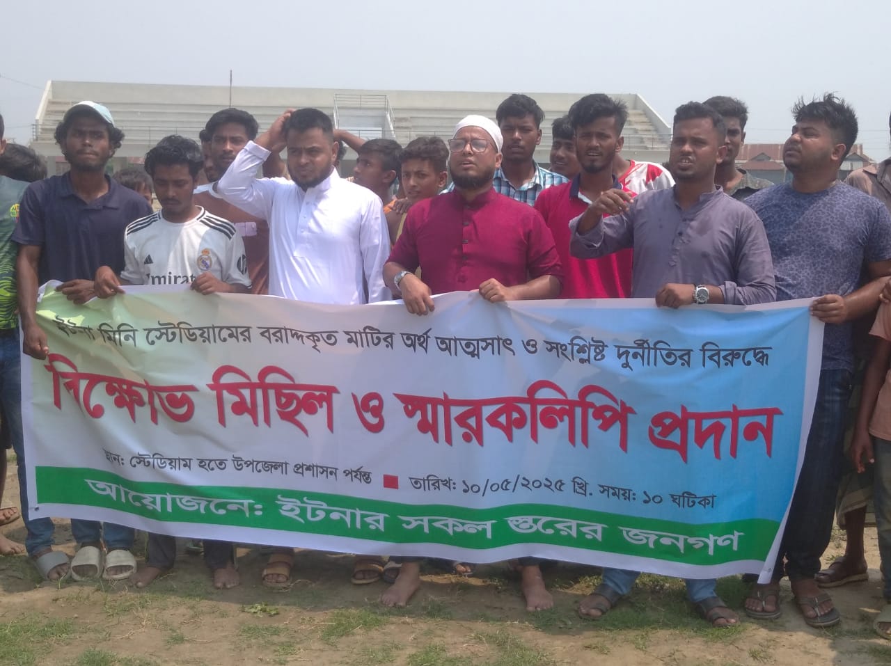কিশোরগঞ্জের ইটনায় মিনি ফুটবল স্টেডিয়ামের নির্মাণ কাজে নির্ধারিত মাটির পরিবর্তে বালি ব্যবহারের অভিযোগ উঠেছে ঠিকাদারি প্রতিষ্ঠানের বিরুদ্ধে। এর প্রতিবাদে মানববন্ধন কর্মসূচি পালন করেছে স্থানীয়রা।