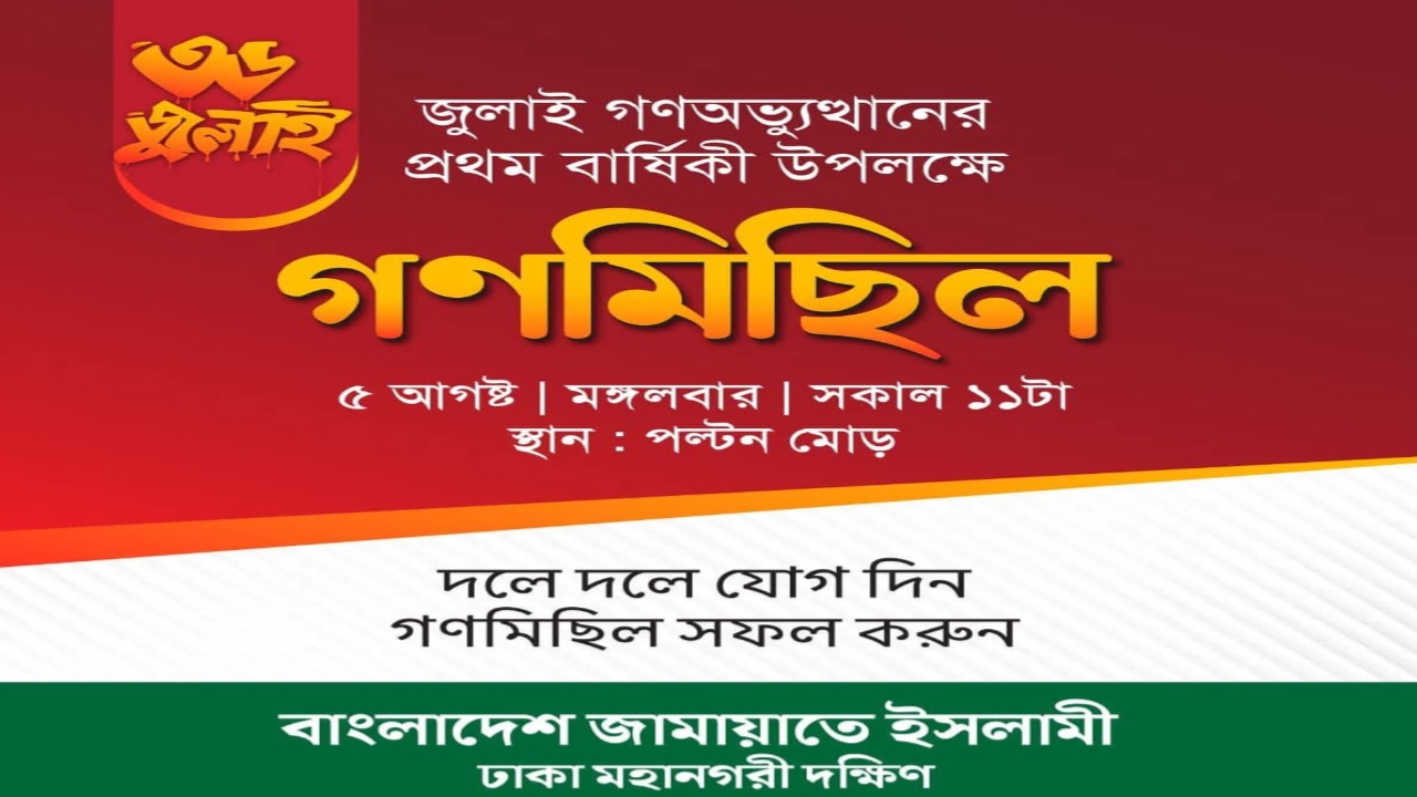 উল্লেখ্য, গত বছর এই সময় রাজনৈতিক প্রেক্ষাপটে যে গণঅভ্যুত্থান ঘটেছিল তা স্মরণে রেখে জামায়াত এই দিনটিকে স্মরণ করছে।