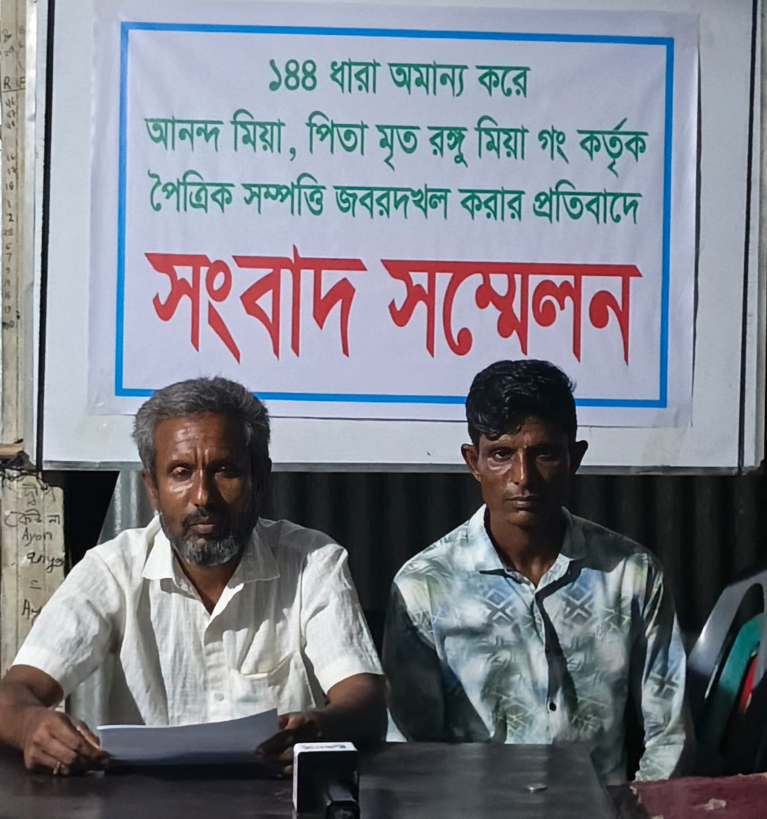 সংবাদ সম্মেলনে লিখিত বক্তব্যে মোস্তাক শেখ জানান, তার পিতা মৃত রমজান শেখের ওয়ারিশ হিসেবে আর.এস ১৪৬ ও ১৪৭ খতিয়ানের এস.এ দাগ নং ১১০৭, ১১০৮ ও ১১০৯-এর মোট ৫৫ শতাংশ জমির বৈধ মালিক তারা। বহু বছর ধরে ওই জমিতে তারা বসতবাড়ি নির্মাণ, গাছপালা রোপণ ও ভোগদখল করছেন। কিন্তু একই এলাকার আনন্দ মিয়া (পিতা মৃত রঙ্গু মিয়া) ও তার সহযোগীরা উক্ত জমি দখলের পাঁয়তারা চালিয়ে আসছে।