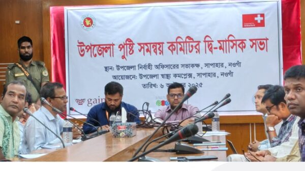 স্টাফ রিপোর্টারঃ নওগাঁর সাপাহারে পুষ্টি সমন্বয় কমিটির দ্বি-মাসিক সভা অনুষ্ঠিত হয়েছে।