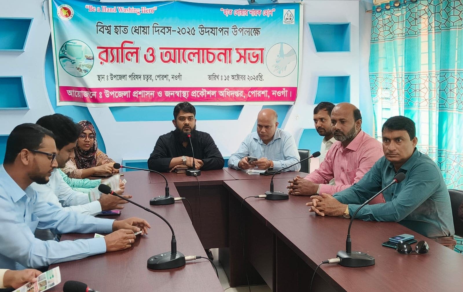 পোরশা(নওগাঁ)প্রতিনিধি: “হাত ধোয়ার নায়ক হোন” প্রতিপাদ্যের আলোকে নওগাঁর পোরশায় বিশ্ব হাত ধোয়া দিবস উদ্যাপন করা হয়েছে। দিবসটি উপলক্ষ্যে বুধবার উপজেলা প্রশাসন ও জনস্বাস্থ্য প্রকৌশল অধিদপ্তরের আয়োজনে র্যালি ও আলোচনা সভা অনুষ্ঠিত হয়। র্যালি শেষে উপজেলা পরিষদ মিলনায়তনে অনুষ্ঠিত আলোচনা সভায় সভাপতিত্ব করেন ইউএনও রাকিবুল ইসলাম। স্বাগত বক্তব্য রাখেন জনস্বাস্থ্য কর্মকর্তা আল-হামিম। এতে সহকারি কমিশনার (ভূমি) নাবিলা ফেরদৌস, প্রাণিসম্পদ কর্মকর্তা জাহাঙ্গীর আলম, প্রাথমিক শিক্ষা কর্মকর্তা সাজ্জাদ হোসেন, সমাজসেবা কর্মকর্তা শহিদুল ইসলাম, যুব উন্নয়ন কর্মকর্তা রফিকুল ইসলাম, ইউআরসি ইন্সিট্রাক্টর আশরাফুল আলম সহ ছাত্র-ছাত্রীগণ উপস্থিত ছিলেন।