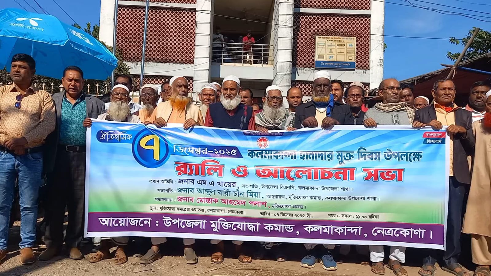 উপজেলা মুক্তিযোদ্ধা কমান্ড, কলমাকান্দার আয়োজনে অনুষ্ঠিত কর্মসূচিতে প্রধান অতিথি হিসেবে উপস্থিত ছিলেন উপজেলা বিএনপির সভাপতি এম, এ খায়ের। অনুষ্ঠানে সভাপতিত্ব করেন উপজেলা মুক্তিযোদ্ধা কমান্ডার আব্দুল বারী চাঁন মিয়া। আলোচনা সভা সঞ্চালনা করেন মোস্তাক আহমেদ পলাশ।