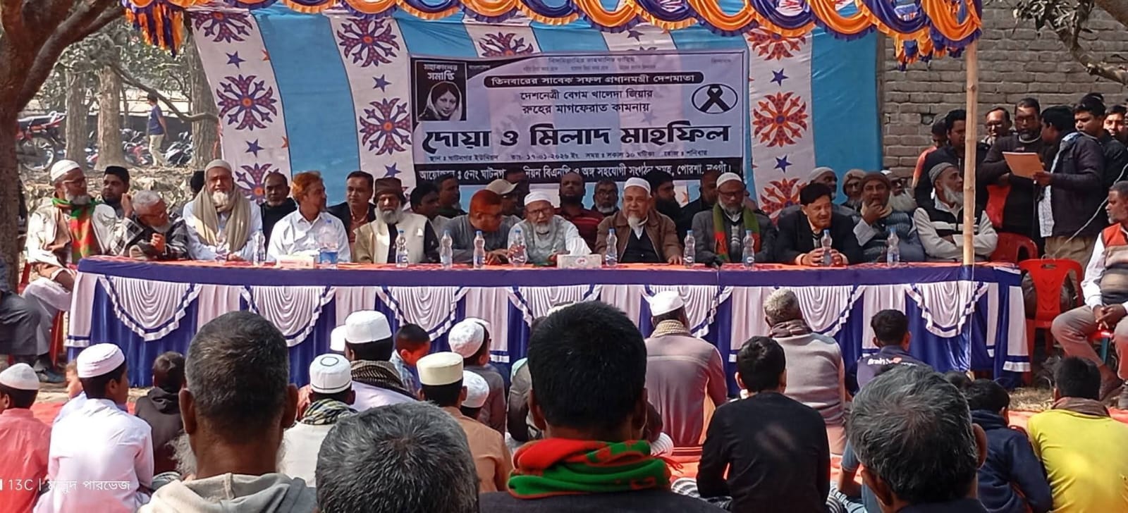 পোরশা(নওগাঁ)প্রতিনিধি: নওগাঁর পোরশায় সাবেক প্রধানমন্ত্রী ও বিএনপির চেয়ারপার্সন বেগম খালেদা জিয়ার রূহের মাগফেরাত কামনায় দোয়া মাহফিল অনুষ্ঠিত হয়েছে। শনিবার দুপুরে উপজেলার ঘাটনগর ইউনিয়ন বিএনপি অঙ্গ ও সহযোগী সংগঠনের আয়োজনে সোমনগর দোদলের মোড়ে এ দোয়া মাহফিল অনুষ্ঠিত হয়। ঘাটনগর ইউনিয়ন বিএনপির সভাপতি মোদাচ্ছের হোসেন এতে সভাপতিত্ব করেন। প্রধান অতিথি হিসেবে উপস্থিত ছিলেন নিয়ামতপুর উপজেলা বিএনপির সাধারন সম্পাদক ও সংসদ সদস্য প্রার্থী মোস্তাফিজুর রহমান। বিশেষ অতিথি হিসেবে উপস্থিত ছিলেন উপজেলা বিএনপির নির্বাচন পরিচালনা কমিটির আহবায়ক তৌফিকুর রহমান চৌধুরী ও সদস্য সচিব সাদেকুল ইসলাম। এসময় উপজেলা বিএনপির সাবেক আহবায়ক শফিউদ্দিন মন্ডল, বিএনপির সহসভাপতি শাখিল জাভেদ, সাংগঠনিক সম্পাদক আবুল হোসেন বাবু, ঘাটনগর ইউনিয়ন বিএনপির সাধারন সম্পাদক মিজানুর রহমান, বিএনপি নেতা গোলাম রহমান, আব্দুল গণি, নিতপুর ইউনিয়ন বিএনপির সভাপতি বেলাল হোসেন, যুবদল আহবায়ক ইকবাল হোসেনসহ ইউনিয়ন বিএনপি অঙ্গ ও সহযোগী সংগঠনের নেতৃবৃন্দ উপস্থিত ছিলেন।#