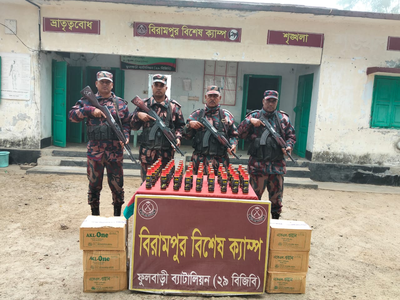৩১ জানুয়ারি ২০২৬ তারিখ ফুলবাড়ী ব্যাটালিয়ন (২৯ বিজিবি) এর অধীনস্থ বিরামপুর বিশেষ ক্যাম্প ও জলপাইতলী বিওপি কর্তৃক পৃথক পৃথক ২টি চোরাচালান প্রতিরোধ অভিযান পরিচালনা করে ১ জন আসামীসহ ১৯২ বোতল বাংলাদেশী যৌন উত্তেজক সিরাপ, ৪৫ পিস ভারতীয় নেশাজাতীয় ট্যাবলেট, ১টি মোবাইল, ১টি চাকু ও ১টি সীম কার্ড আটক করতে সক্ষম হয়। আটককৃত মাদকদ্রব্য ও চোরাচালানী মালামালের সিজার মূল্য ৩৪,২৫০/- (চৌত্রিশ হাজার দুইশত পঞ্চাশ) টাকা।