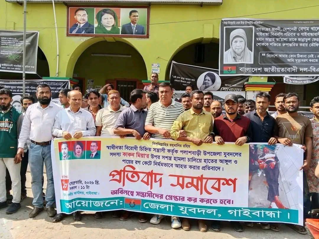গাইবান্ধা জেলার পলাশবাড়ী উপজেলা যুবদলের সদস্য ও যুবনেতা কাকন মিয়া–এর ওপর সন্ত্রাসীদের সশস্ত্র হামলায় তাকে নির্মমভাবে আহত করার ঘটনার তীব্র প্রতিবাদ জানিয়ে গাইবান্ধা জেলা যুবদল–এর উদ্যোগে এক প্রতিবাদ সমাবেশ অনুষ্ঠিত হয়েছে।