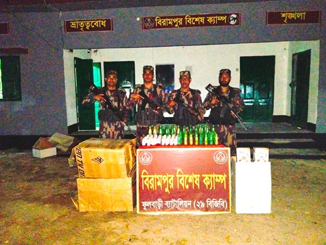 গত ২২ ফেব্রুয়ারি ২০২৬ তারিখ ফুলবাড়ী ব্যাটালিয়ন (২৯ বিজিবি) এর অধীনস্থ বিরামপুর বিশেষ ক্যাম্প কর্তৃক ০১টি চোরাচালান প্রতিরোধ অভিযান পরিচালনা করে ১৩৪৪ বোতল বাংলাদেশী যৌন উত্তেজক সিরাপ আটক করতে সক্ষম হয়। আটককৃত বাংলাদেশী যৌন উত্তেজক সিরাপের সিজার মূল্য ২,০১,৬০০/- (দু্ই লক্ষ এক হাজার ছয়শত) টাকা।