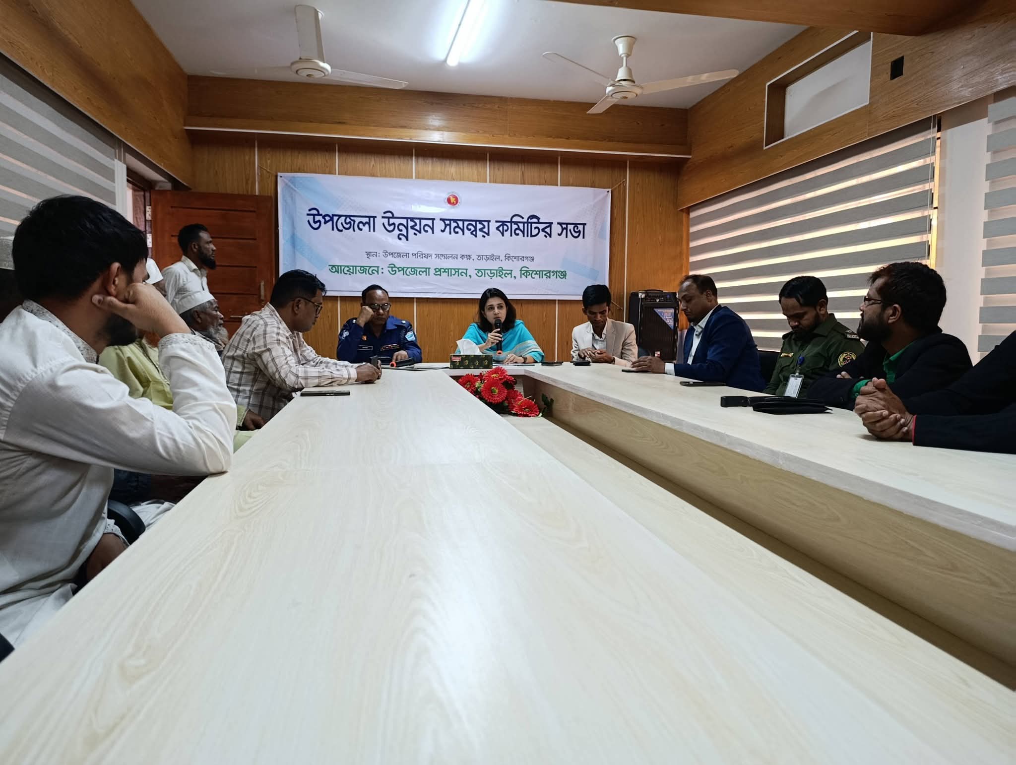 কিশোরগঞ্জের তাড়াইল উপজেলায় উন্নয়ন সমন্বয় কমিটির সভা এবং আইনশৃঙ্খলা পরিস্থিতি স্বাভাবিক ও স্থিতিশীল রাখতে উপজেলা প্রশাসনের উদ্যোগে আইনশৃঙ্খলা কমিটির মাসিক সভা অনুষ্ঠিত হয়েছে।