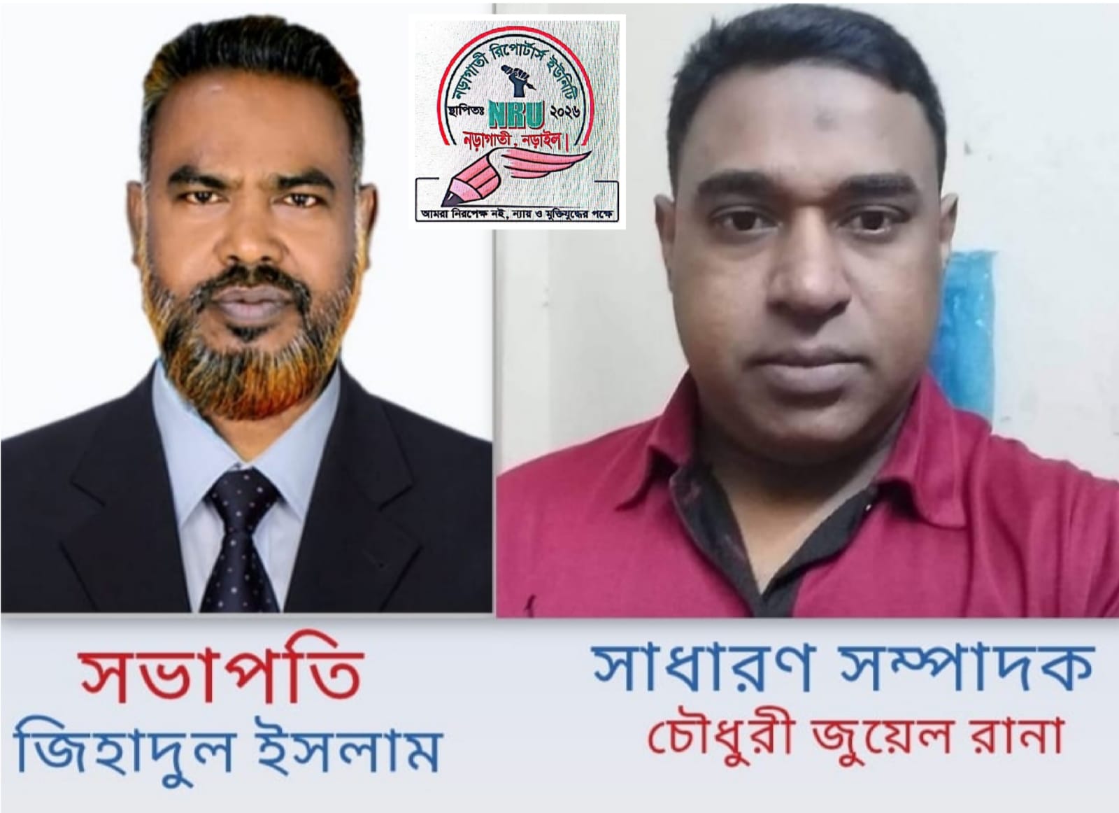 "নড়াগাতী রিপোর্টার্স ইউনিটি"। এই প্রত্যাশায় আয়োজিত সভায় সকল সাংবাদিকদের মতামত গ্রহনের ভিত্তিতে সর্বসম্মতিক্রমে ১৯ সদস্যের একটি কমিটি ঘোষণা করা হয়। এতে এ. কে. এম. জিহাদুল ইসলামকে সভাপতি এবং চৌধুরী জুয়েল রানাকে সাধারণ সম্পাদক (সেক্রেটারি) হিসেবে মনোনীত করেন কমিটির সদস্যরা।