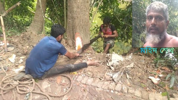 নড়াগাতীর চাপাইলে রাস্তার সরকারি গাছ বিক্রির অভিযোগ।