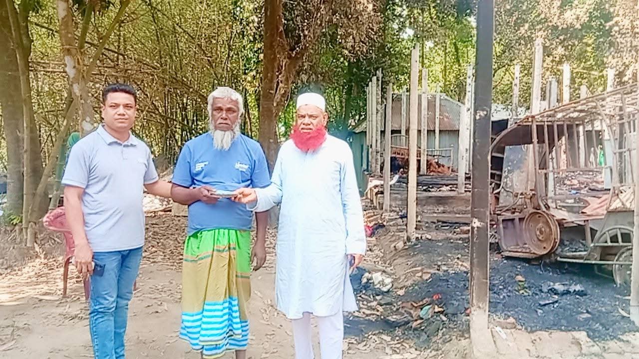 কোলা বাজারের পাশেই হোসেন আলী বাড়ি, বিদ্যুৎ শর্ট সার্কিট থেকে অগ্নিকাণ্ডে সর্বস্ব হারিয়েছেন। সদর উপজেলার নির্বাহী কর্মকর্তার পাঠানো ২৫ কেজি চাউল এবং শুকনা খাবার সহ নিত্য প্রয়োজনীয় কিছু সামগ্রী পৌঁছে দেন ও বসন্তপুর ইউনিয়নের সুযোগ্য মানবিক চেয়ারম্যান জাকির হোসেন সরদার ও বিজয় কুমার উপজেলার। সর্বস্ব হারানো হোসেন আলীকে নগত দশ হাজার টাকা প্রদান করেন।