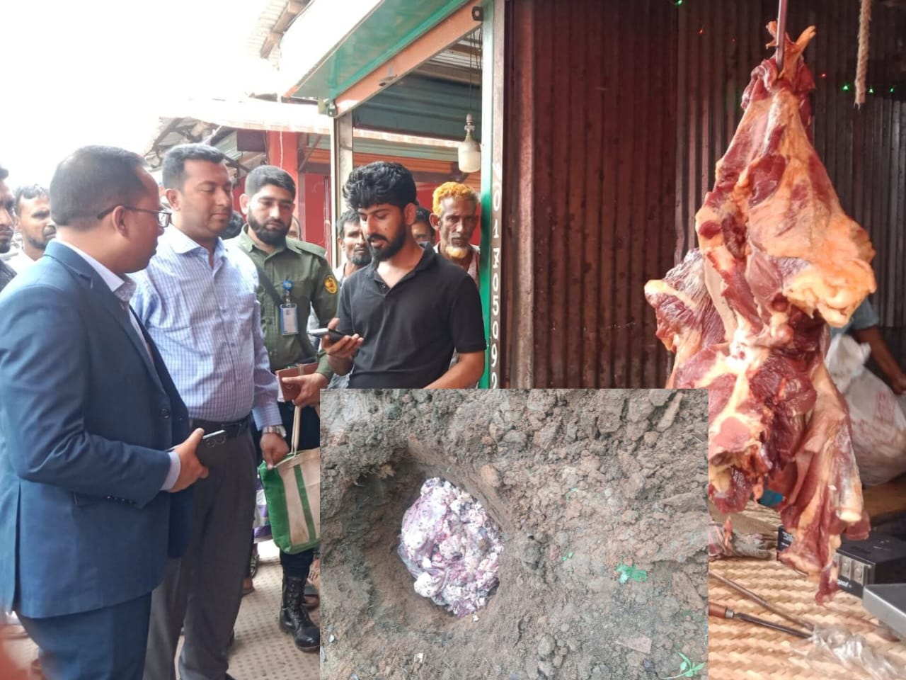 জব্দকৃত প্রায় ১ মণ মাংস মাটির নিচে পুঁতে ফেলা হয়।
