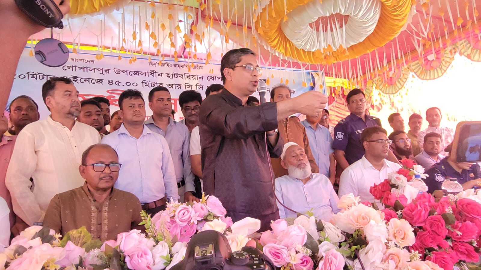 টাঙ্গাইলের গোপালপুর উপজেলা পৌরশহরের সেই ঝুঁকিপূর্ণ বৈরাণ সেঁতু পরিদর্শন করে গেলেন এলজিআরডি প্রতিমন্ত্রী মীর শাহে আলম। আজ শুক্রবার সকালে তিনি সেঁতুর দুর্দশা স্বচক্ষে দেখার জন্য টাঙ্গাইল হয়ে গোপালপুর পৌরশহরের হাট বৈরাণ মহল্লার বৈরাণ নদের উভয় পাড় ঘুরে দেখেন। এ সময়ে প্রতিমন্ত্রীর সাথে উপস্থিত ছিলেন টাঙ্গাইল-০২ (গোপালপুর-ভূঞাপুর) আসনের এমপি এবং সাবেক শিক্ষা উপমন্ত্রী এভভোকেট আব্দুস সালাম পিন্টু, টাঙ্গাইল জেলা এলজিইডির নির্বাহী প্রকৌশলী মোহাম্মদ কামুজ্জামান, গোপালপুর উপজেলা নির্বাহী অফিসার মো. জিল্লুর রহমান, সহকারি কমিশনার (ভূমি) নবাব আলী, উপজেলা বিএনপির সভাপতি খন্দকার জাহাঙ্গীর আলম রুবেল, সম্পাদক কাজী লিয়াকত, সিনিয়র সহসভাপতি এবং শিক্ষক নেতা আমিনুল ইসলাম, সহসভাপতি আবু ঈসা মুনিম, পৌর বিএনপির সভাপতি খালিদ হাসান উথান, সম্পাদক চাঁন মিয়া, যুবদল সভাপতি সাইফুল ইসলাম তালুকদার লেলিন প্রমুখ।