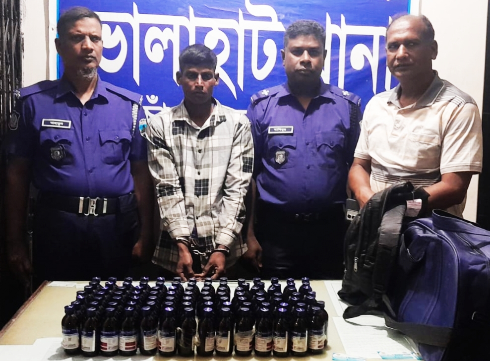 চাঁপাইনবাবগঞ্জের ভোলাহাট উপজেলায় বিশেষ অভিযান পরিচালনা করে ৯৮ বোতল ভারতীয় ইসকাপ সিরাপসহ এক মাদক ব্যবসায়ীকে আটক করেছে ভোলাহাট থানা পুলিশ। বৃহস্পতিবার (৯ এপ্রিল ২০২৬) অভিযান চালিয়ে আটককৃত ব্যক্তি মোঃ গোলাম রব্বানী (২৭)। তিনি উপজেলার মুশরিভুজা এলাকার বাসিন্দা এবং তার পিতা মোঃ জালাল উদ্দিন। পুলিশ সূত্রে জানা যায়, গোপন সংবাদের ভিত্তিতে ভোলাহাট থানা পুলিশের একটি দল বিশেষ অভিযান পরিচালনা করে তাকে হাতেনাতে আটক করে। এসময় তার কাছ থেকে ৯৮ বোতল ভারতীয় নিষিদ্ধ ইসকাপ সিরাপ উদ্ধার করা হয়। এ ঘটনায় ভোলাহাট থানায় একটি নিয়মিত মামলা দায়ের করা হয়েছে। যার মামলা নম্বর-০৩, তারিখ-০৯/০৪/২০২৬ ইং। ভোলাহাট থানার অফিসার ইনচার্জ আব্দুল বারিক জানায়, মাদকের বিরুদ্ধে এ ধরনের অভিযান অব্যাহত থাকবে এবং মাদক নির্মূলে আইনশৃঙ্খলা বাহিনী কঠোর অবস্থানে রয়েছে।