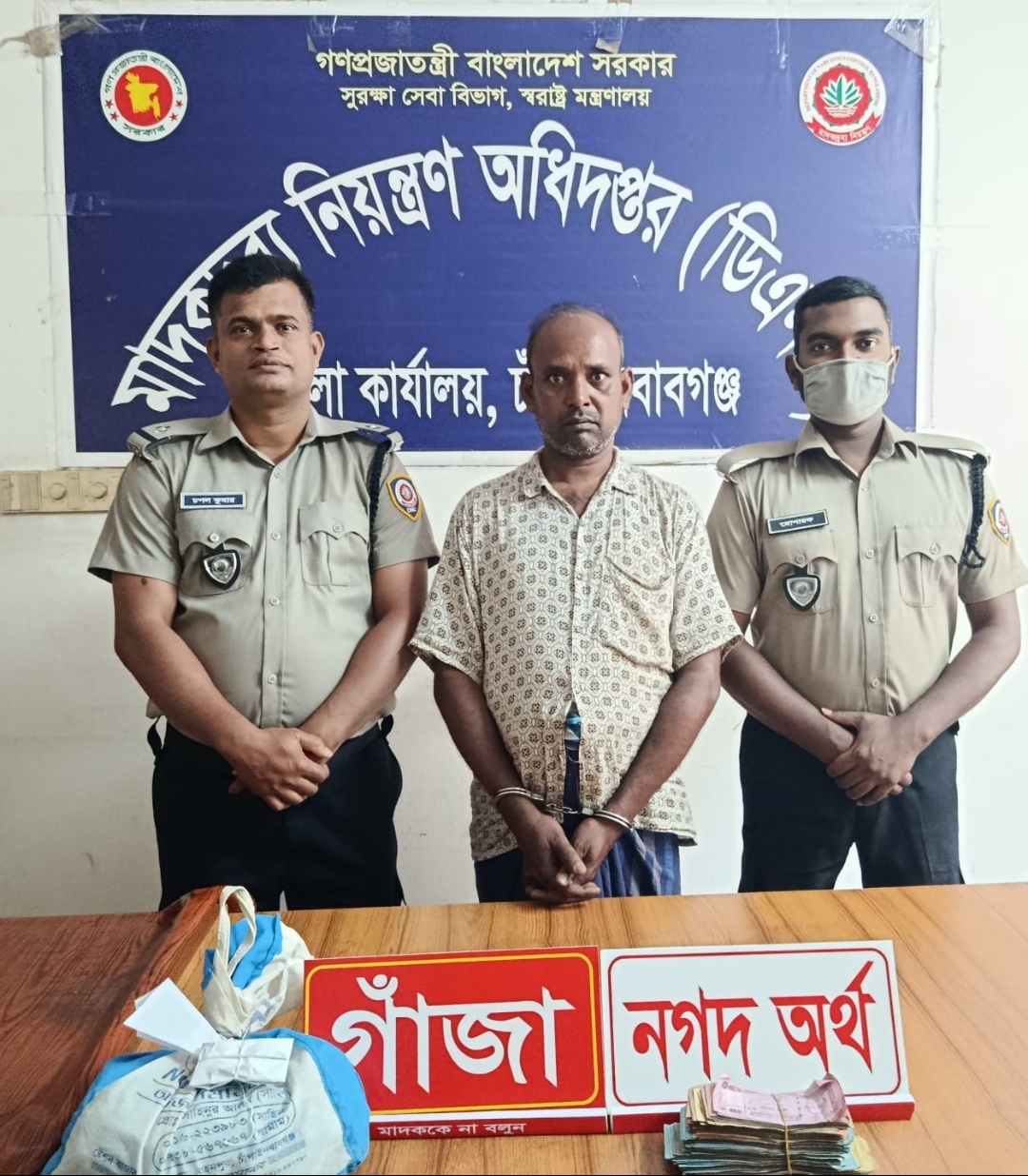 চাঁপাইনবাবগঞ্জের গোমস্তাপুর উপজেলায় মাদকদ্রব্য নিয়ন্ত্রণ অধিদপ্তর (ডিএনসি) এর অভিযানে ৫০০ গ্রাম গাঁজাসহ রাজ কুমার (৪৩) নামে এক ব্যক্তিকে আটক করা হয়েছে। এ সময় তার কাছ থেকে নগদ ৩২ হাজার ৯৪০ টাকা জব্দ করা হয়।