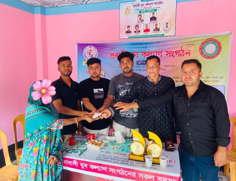 কিশোরগঞ্জ জেলার,ভৈরব উপজেলার,কালিকাপ্রসাদ ইউনিয়ন এর ৩নং ওয়ার্ডের মানবতার সংগঠন, প্রবাসী যুব কল্যাণ সংগঠনের পক্ষ থেকে অসহায় এক মেয়ের বিয়ের জন্য ৩০ টাকা অনুদান দেওয়া হলো।