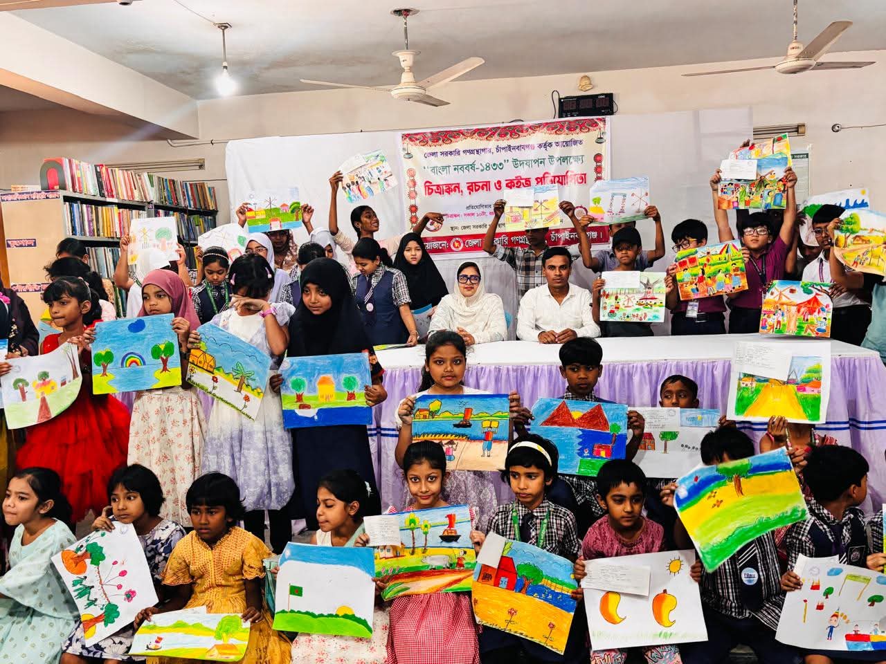 চাঁপাইনবাবগঞ্জে বাংলা নববর্ষ-১৪৩৩ উদযাপন উপলক্ষে চিত্রাঙ্কন, রচনা ও কুইজ প্রতিযোগিতা অনুষ্ঠিত হয়েছে। চাঁপাইনবাবগঞ্জ জেলা সরকারি গণগ্রন্থাগার কর্তৃক আয়োজিত এ প্রতিযোগিতাগুলো শনিবার (১১ এপ্রিল) দিনব্যাপী গণগ্রন্থাগার প্রাঙ্গণে অনুষ্ঠিত হয়।