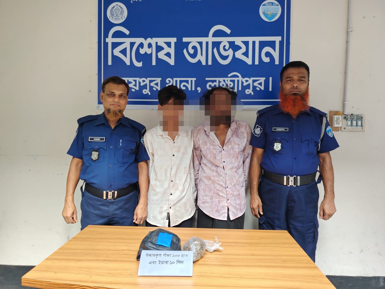 পুলিশ জানায়, গ্রেফতারকৃতদের হেফাজত থেকে ১০০ গ্রাম গাঁজা ও ১০ পিস ইয়াবা ট্যাবলেট উদ্ধার করা হয়।