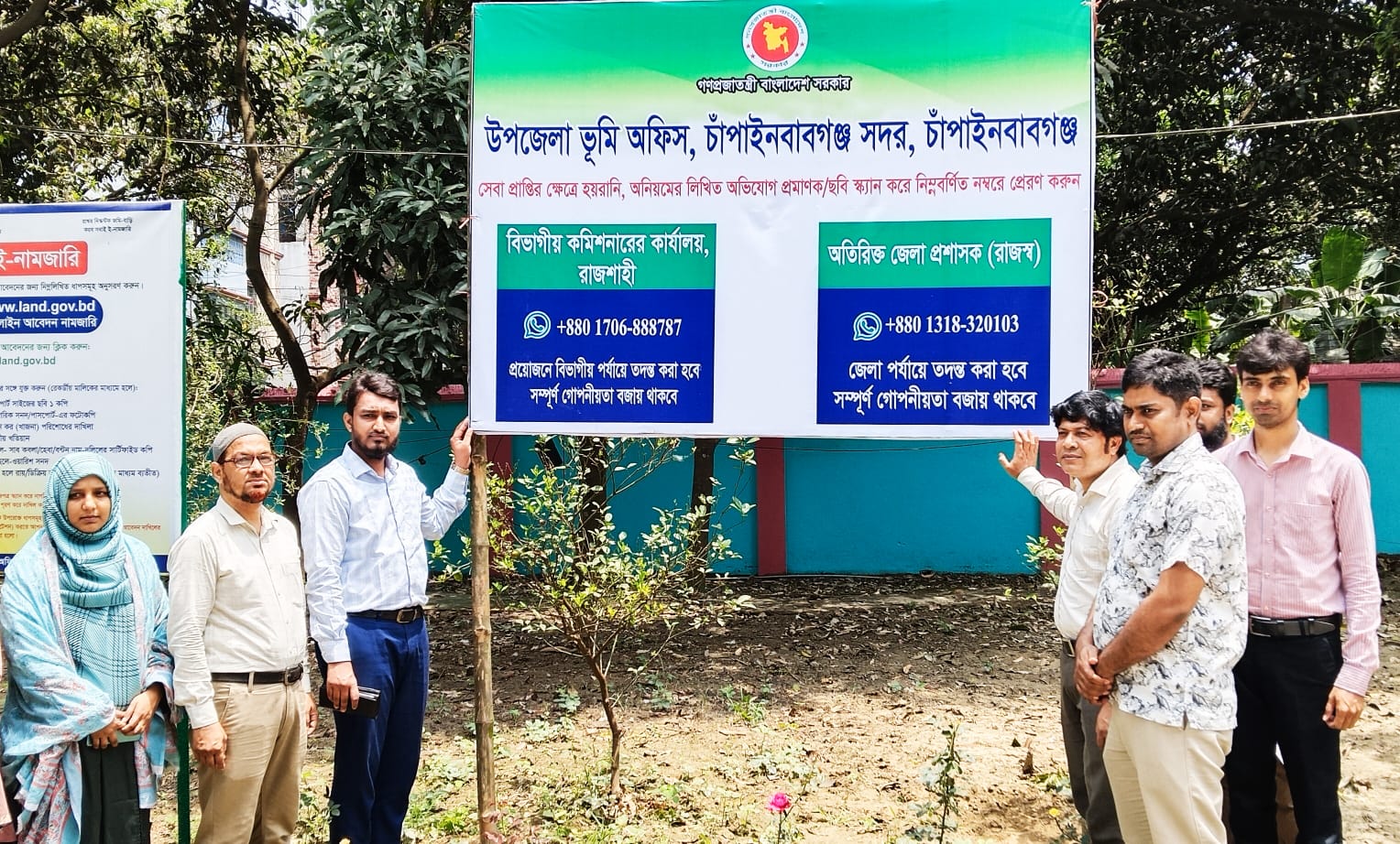 সেবা প্রাপ্তিতে হয়রানি ও অনিয়ম বন্ধে গুরুত্বপূর্ণ উদ্যোগ নিয়েছে চাঁপাইনবাবগঞ্জ সদর উপজেলা ভূমি অফিস। এখন থেকে ভূমি সংক্রান্ত যেকোনো অনিয়ম, দুর্নীতি বা হয়রানির বিরুদ্ধে লিখিত অভিযোগ প্রমাণক ও ছবি স্ক্যান করে সরাসরি রাজশাহী বিভাগীয় কমিশনারের কার্যালয় এবং অতিরিক্ত জেলা প্রশাসক (রাজস্ব)-এর হোয়াটসঅ্যাপ নম্বরে পাঠানো যাবে। বৃহস্পতিবার (২৩ এপ্রিল) সকাল ১১টা ৩০ মিনিটে সদর ভূমি অফিস প্রাঙ্গণে অভিযোগ নম্বরসহ সাইনবোর্ডের উদ্বোধন করেন সহকারী কমিশনার (ভূমি) মোঃ ইকরামুল হক নাহিদ। উদ্বোধনী বক্তব্যে তিনি বলেন, এ উদ্যোগের ফলে সাধারণ মানুষ আর কোনো ধরনের হয়রানির শিকার হবে না। কাজের বিনিময়ে কোনো ভূমি কর্মকর্তা টাকা নিতে পারবে না বলেও তিনি কঠোরভাবে সতর্ক করেন। পাশাপাশি, প্রয়োজনে অভিযোগকারীর পরিচয় সম্পূর্ণ গোপন রাখা হবে বলে জানান তিনি। সদর ভূমি অফিসে ইতোমধ্যে অভিযোগ করার নির্দিষ্ট নম্বরসহ সাইনবোর্ড স্থাপন করা হয়েছে, যাতে সহজেই মানুষ তাদের অভিযোগ জানাতে পারেন। অনুষ্ঠানে আরও উপস্থিত ছিলেন অতিরিক্ত জেলা প্রশাসক (রাজস্ব) এর নাজির মোঃ আতিকুর রহমান, মোঃ জাহাঙ্গীর হোসেন (কানুনগো, নাচোল), সদর ভূমি অফিসের প্রধান সহকারী মোঃ শুকুরুদ্দীন, তহসিলদার মোঃ রমজান আলীসহ অন্যান্য কর্মকর্তা-কর্মচারীরা।