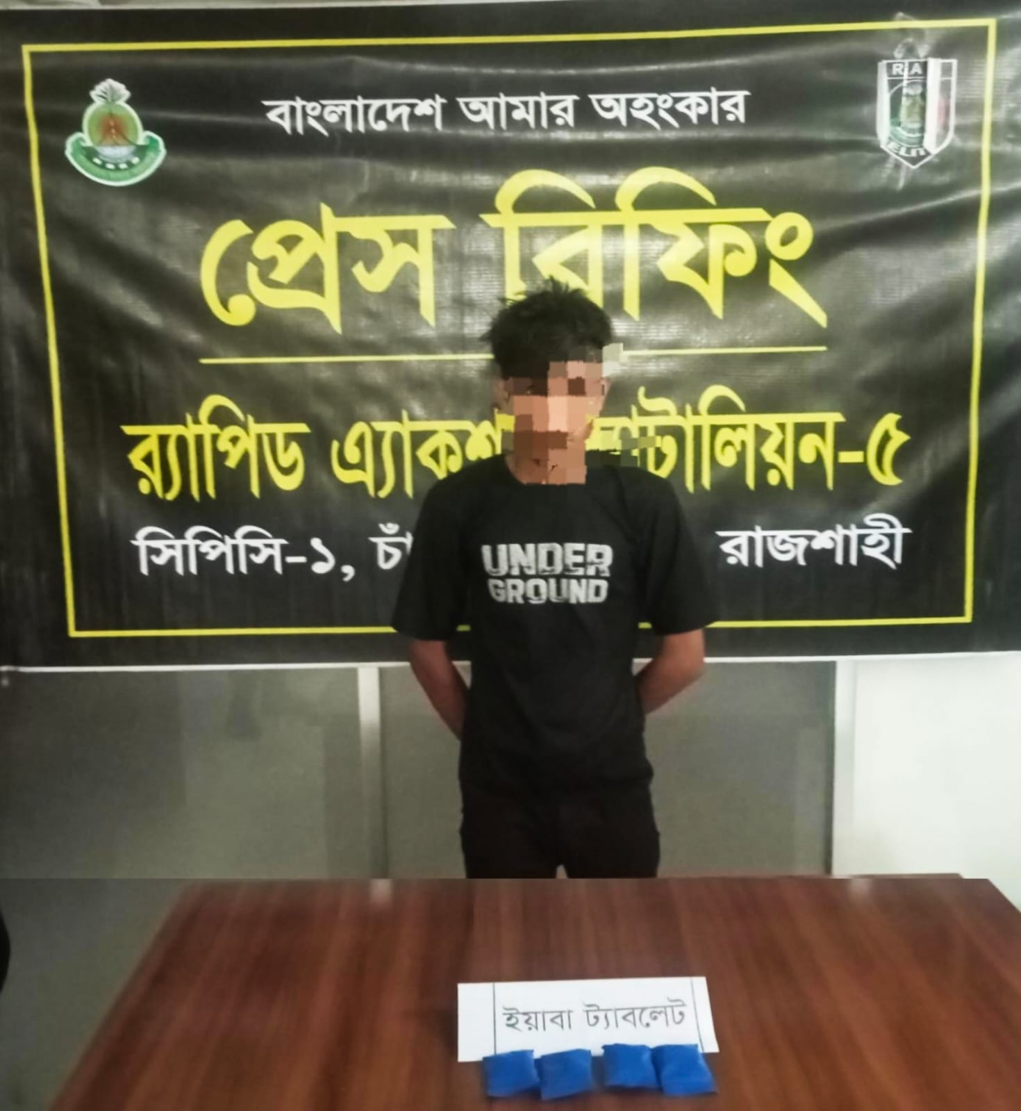 চাঁপাইনবাবগঞ্জের শিবগঞ্জ উপজেলায় অভিযান চালিয়ে ৭৭০ পিস ইয়াবা ট্যাবলেটসহ এক মাদক কারবারিকে গ্রেপ্তার করেছে র্যাপিড অ্যাকশন ব্যাটালিয়ন (র্যাব)। শনিবার (২৫ এপ্রিল) সন্ধ্যায় র্যাব-৫, সিপিসি-১ এর একটি আভিযানিক দল শিবগঞ্জ থানাধীন মনাকষা ইউনিয়নের বনকুল এলাকায় এ অভিযান পরিচালনা করে। র্যাব সূত্র জানায়, গোপন সংবাদের ভিত্তিতে মনাকষা ইউনিয়নের ৩ নম্বর ওয়ার্ডের বনকুল আদিনা কলেজ গেটের সামনে অভিযান চালিয়ে মো. বাবু ইসলাম ওরফে বাবু (২০) নামে এক ব্যক্তিকে আটক করা হয়। এ সময় তার দেহ তল্লাশি করে একটি সাদা পলিথিনের ভেতরে রাখা চারটি নীল প্যাকেট থেকে মোট ৭৭০ পিস ইয়াবা ট্যাবলেট উদ্ধার করা হয়। প্রাথমিক জিজ্ঞাসাবাদে আটক ব্যক্তি দীর্ঘদিন ধরে ওই এলাকায় মাদক ব্যবসার সঙ্গে জড়িত থাকার কথা স্বীকার করেছে বলে জানিয়েছে র্যাব। উদ্ধারকৃত মাদকদ্রব্য ও আটক ব্যক্তিকে পরবর্তী আইনগত ব্যবস্থা গ্রহণের জন্য শিবগঞ্জ থানায় হস্তান্তর করা হয়েছে। মাদকবিরোধী অভিযানে র্যাবের এ ধরনের কার্যক্রম ভবিষ্যতেও অব্যাহত থাকবে বলে জানিয়েছে সংস্থাটি।