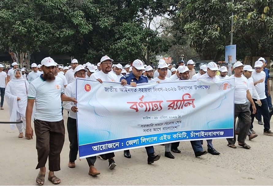 “সরকারি খরচে বিরোধ শেষ, সবার আগে বাংলাদেশ” এই প্রতিপাদ্যকে সামনে রেখে চাঁপাইনবাবগঞ্জে যথাযোগ্য মর্যাদায় জাতীয় আইনগত সহায়তা দিবস-২০২৬ পালিত হয়েছে। দিবসটি উপলক্ষে দরিদ্র ও সুবিধাবঞ্চিত মানুষের জন্য বিনামূল্যে আইনি সহায়তা প্রদান বিষয়ে জনসচেতনতা বৃদ্ধি এবং ‘১৬৬৯৯’ কল সেন্টারের সেবা প্রচারে জেলা, উপজেলা ও ইউনিয়ন পর্যায়ে বিভিন্ন কর্মসূচি গ্রহণ করা হয়। মঙ্গলবার (২৮ এপ্রিল) সকাল ৯টায় চাঁপাইনবাবগঞ্জ জেলা জজ আদালত ভবন-১ এর সামনে পায়রা ও বেলুন উড়িয়ে দিবসটির উদ্বোধন করেন অতিথিবৃন্দ। অনুষ্ঠানে সভাপতিত্ব করেন সিনিয়র জেলা ও দায়রা জজ এবং জেলা লিগ্যাল এইড কমিটির চেয়ারম্যান মোঃ হায়দার আলী খোন্দকার। উদ্বোধনের পর একটি বর্ণাঢ্য র্যালি শহরের প্রধান প্রধান সড়ক প্রদক্ষিণ করে। পাশাপাশি লিগ্যাল এইড সম্পর্কে জনসচেতনতা বৃদ্ধির লক্ষ্যে গম্ভীরা গানের আয়োজন করা হয়, যা উপস্থিত জনসাধারণের মাঝে ব্যাপক সাড়া ফেলে। অনুষ্ঠানে উপস্থিত ছিলেন জেলা প্রশাসক আবু ছালেহ মোঃ মুসা জঙ্গী, জেলা পুলিশ সুপার গৌতম কুমার বিশ্বাস, জেলা সিভিল সার্জন ডা. এ কে এম শাহাব উদ্দীন, ২৫০ শয্যা বিশিষ্ট জেলা হাসপাতালের তত্ত্বাবধায়ক ডা. মুহাম্মদ মশিউর রহমান, জেলা আইনজীবী সমিতির সভাপতি আবদুল ওদুদসহ বিচার বিভাগের বিচারক, আইনজীবী ও সংশ্লিষ্ট কর্মকর্তা-কর্মচারীরা।