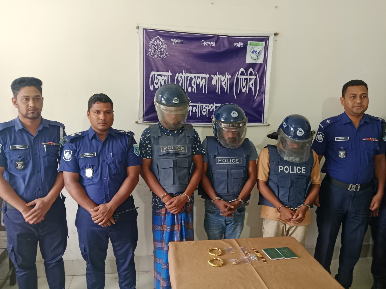 ঘটনার পর সোমবার (২৭ এপ্রিল) দিনভর অভিযান চালিয়ে ঢাকার আশুলিয়ার গকুর নগর এলাকা থেকে রাব্বি ও রাজকে গ্রেপ্তার করা হয়। একই দিনে ঘোড়াঘাট উপজেলার দেওগ্রাম এলাকা থেকে শান্তকে আটক করা হয়।