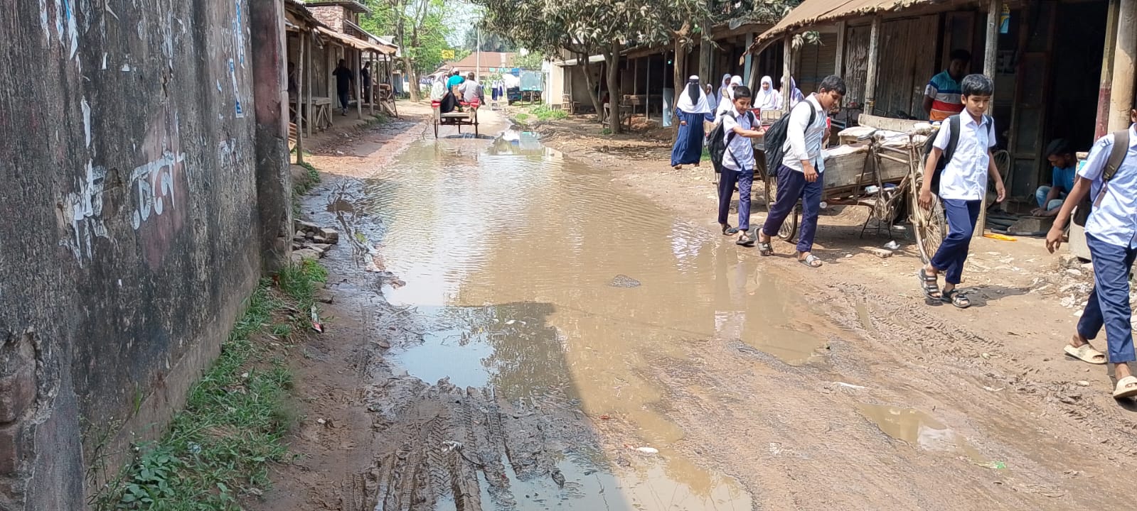এদিকে সবচেয়ে বেশি ভোগান্তিতে পড়েছে দুইটি বেসরকারি বিদ্যালয়ের শিক্ষার্থীরা। প্রতিদিন নোংরা পানির মধ্য দিয়ে স্কুলে যাতায়াত করতে গিয়ে তাদের পোশাক, জুতা এবং বই-খাতা নষ্ট হচ্ছে। পিচ্ছিল সড়কের কারণে প্রায়ই ছোট-বড় দুর্ঘটনার ঘটনাও ঘটছে, যা অভিভাবকদের মধ্যে উদ্বেগ বাড়িয়ে তুলেছে।
