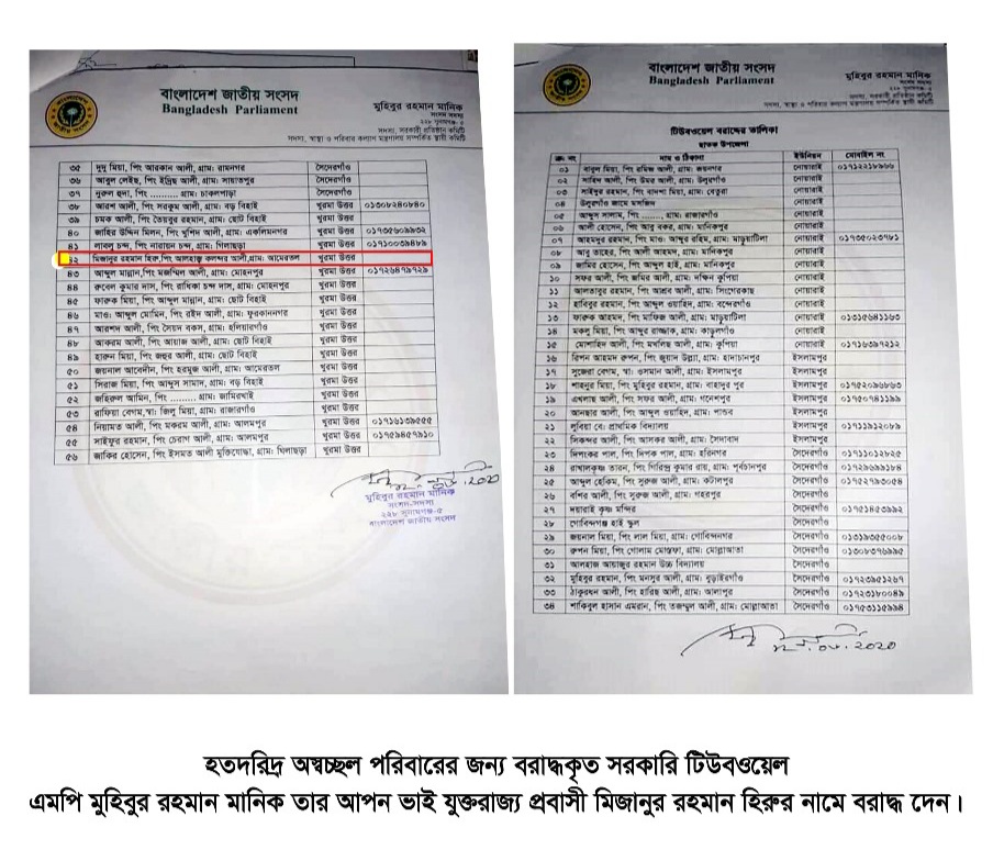 উপজেলার দ্ররিদ্রের গভীর নলকূপ ধনীদের ঘরে ঘরে স্থাপন করেছে, নতুন আবেদন করতে স্থানীয় এমপি.উপজেলার চেয়ারম্যান,ভাইন্স-চেয়ারম্যান,কাছে যেতে বলে জনস্বাস্থ্য প্রকৌশলী। সুবিধা-বঞ্চিতরা পানির কষ্টে মরেছে। উপজেলাজুড়ে নলকূপ বরাদ্দের নামে চলছে ব্যাপক অনিয়ম হরিলুট। সরকারী কোন নীতিমালা মানা হচ্ছে না। সরকার দণীয় এমপি.উপজেলার চেয়ারম্যান,ভাইন্স-চেয়ারম্যান,ইউপি চেয়ারম্যানরা তাদের প্যাড দিয়ে গভীর নলকূপ বরাদ্দ দিচ্ছে বেশির ভাগই সচ্ছল ব্যক্তি, দলীয় নেতাকর্মী, লন্ডন প্রবাসী ও প্রভাবশালী নেতাদের আত্মীয় স্বজনদের নাম উঠে আসছে ।