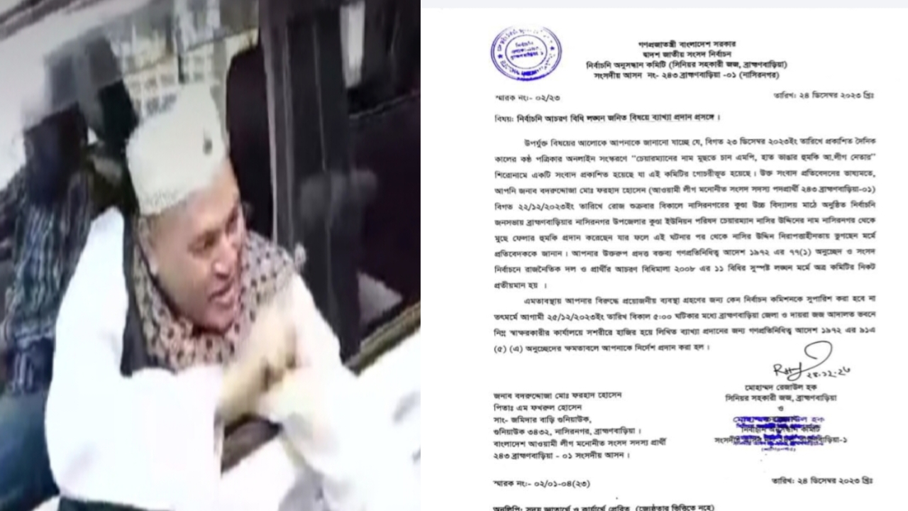 রোববার ২৪ ডিসেম্বর ডিসেম্ভর ২০২৩ রোজ রবিবার দুপুরে ব্রাহ্মণবাড়িয়ার সিনিয়র সহকারী জজ ও নির্বাচন অনুসন্ধান কমিটির চেয়ারম্যন মোহাম্মদ রেজাউল হক স্বাক্ষরিত চিটিতে বি,এম ফরহাদ হোসেন সংগ্রামকে সোমবার ২৫ ডিসেম্বর বিকেল ৫টার মধ্যে জেলা ও দায়রা জজ আদালতে স্ব শরীরে হাজির হয়ে লিখিত ব্যাখা দিতে নির্দেশ দেওয়া হয়েছে। চিঠিটি রোববার দুপুরেই ফরহাদ হোসেনের কাছে পৌঁছানো হয়েছে বলে সংশ্লিষ্ট একটি সূত্র নিশ্চিত করেছে।