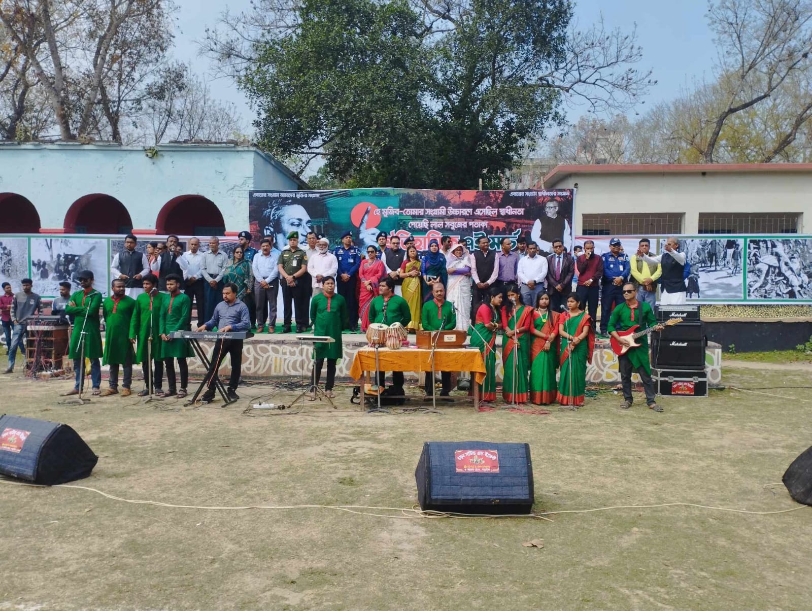 এ সময় স্কুল-কলেজের শিক্ষার্থীরা মনোরম হিউম্যান চেইনের মাধ্যমে বাংলাদেশের মানচিত্র ফুটিয়ে তোলে। মাঠের একপ্রান্তে বিশালাকার বাংলাদেশের পতাকার পাশাপাশি বঙ্গবন্ধুর স্বাধীনতা পূর্ববর্তী ও পরবর্তী বিভিন্ন সময়ের ছবি মাঠের চারপাশে শোভা পাচ্ছিল। এর আগে বঙ্গবন্ধুর প্রতিকৃতিতে পুস্পস্তবক অর্পণ করা হয়।