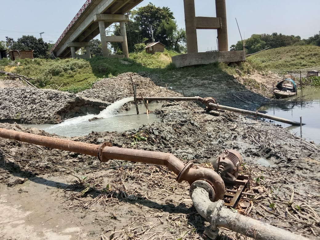 অবশেষে ২ দিন পর চাঁপাইনবাবগঞ্জের গোমস্তাপুর উপজেলার রাধানগর ইউনিয়নে বড়বিলের বোরোধানের জমিতে সেচের পানি পেতে শুরু করেছে কৃষকরা ।শুক্রবার সকালে ওই এলাকা সরজমিনে পরিদর্শন করে এ তথ্য পাওয়া গেছে। সরজমিনে দেখা যায়, বিএমডিএর গোমস্তাপুর জোনের আওতায় রামদাস সেতুর নিচে পূনর্ভবা নদী থেকে একটি সেচ পাম্পের( মর্টারের) মাধ্যমে পানি উত্তোলন করে আকারির বাঁধ (খাঁড়ি) হয়ে সেচের পানি ওই এলাকায় অবস্থিত ৫ টি এলএলবি পাম্পের মাধ্যমে জমিগুলোতে সরবরাহ করা হচ্ছে। এদিকে,নদীর পানি প্রবাহ স্বাভাবিক রাখতে শুক্রবার বিকেলে পূনর্ভবা নদীতে ড্রেজার দিয়ে খনন শুরু করেছে বিএমডিএ।