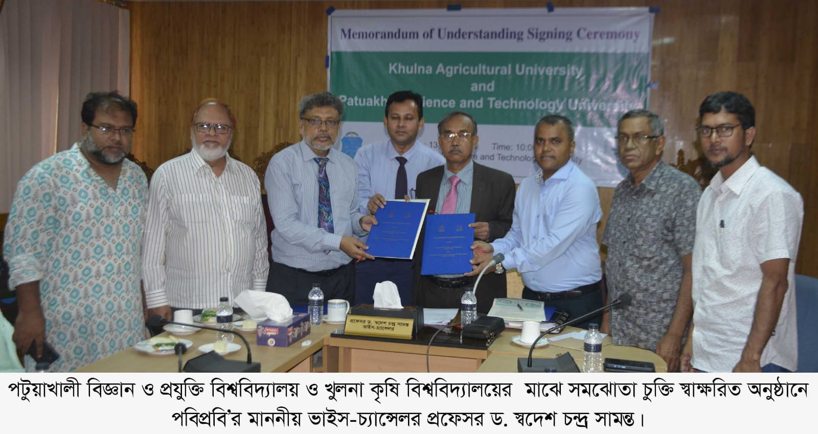 পটুয়াখালী বিজ্ঞান ও প্রযুক্তি বিশ্ববিদ্যালয়ের পক্ষে প্রফেসর ড. সন্তোষ কুমার বসু, রেজিস্ট্রার (অ. দা.) এবং খুলনা কৃষি বিশবিদ্যালয়ের পক্ষে ড. খন্দকার মাজহারুল আনোয়ার, রেজিস্ট্রার এ চুক্তিতে স্বাক্ষর করেন।